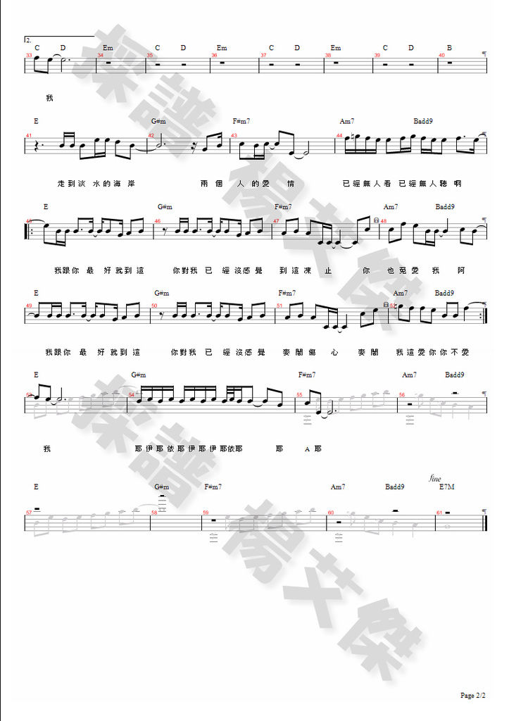 ※看不懂五線譜的朋友不用擔心,請直接忽略他,因為只要你會唱這首歌就一定練得會,五線譜是寫給鋼琴參考的;