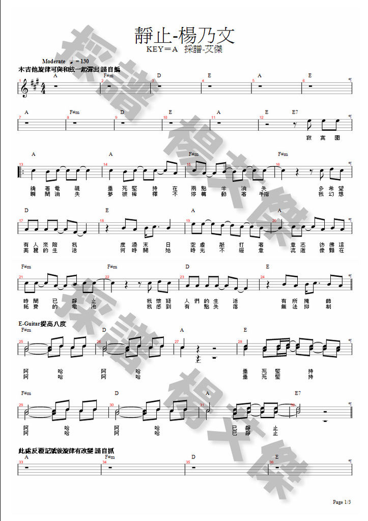 小節跟和弦都標註的很清楚,完全照原曲走。
