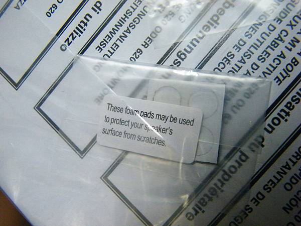 內附有8個防刮軟墊,可以裝在底部的4個角▼(可惡,我還在想怎麼沒附喇叭線,送這是要幹嘛ㄒ.ㄒ)