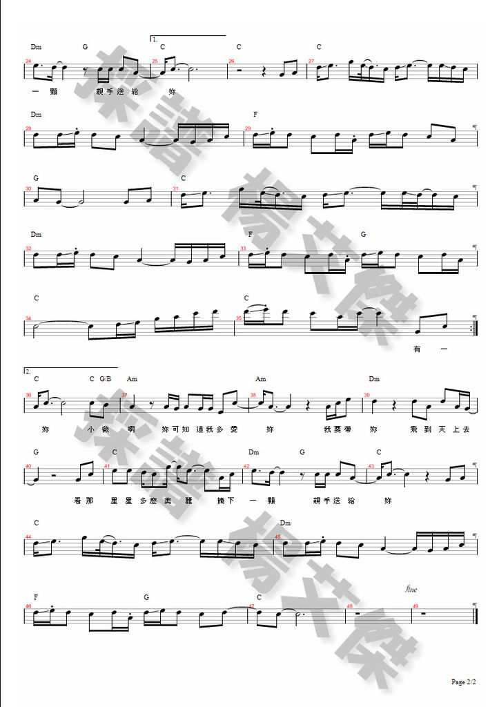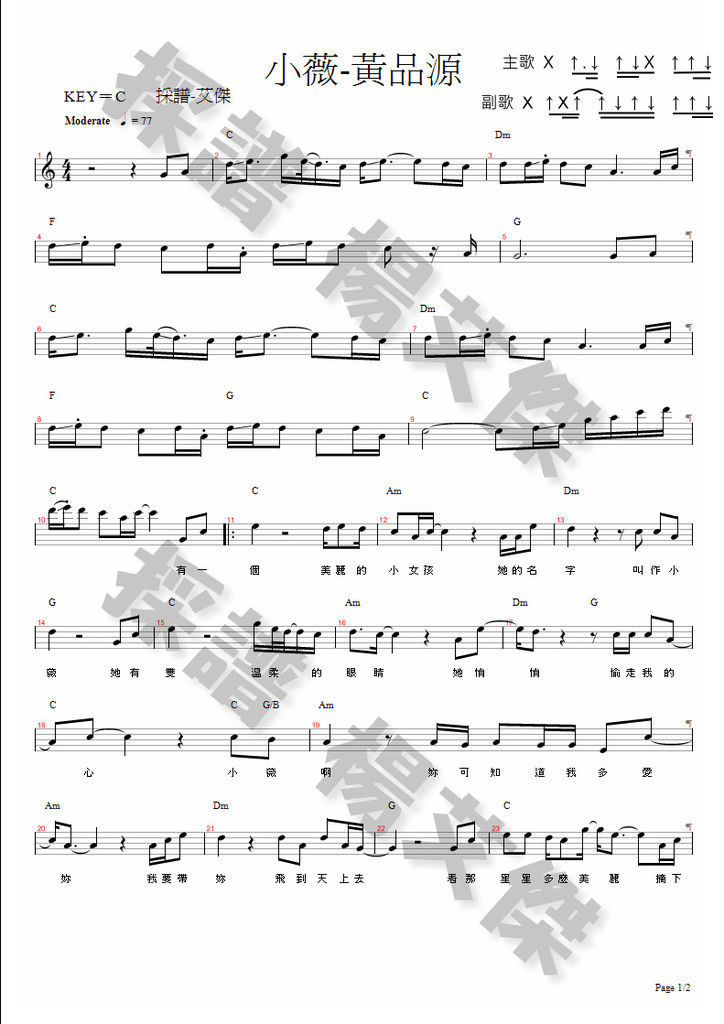 1.看不懂五線譜的朋友不用擔心,請直接忽略他,因為只要你會唱這首歌就一定練得會,五線譜是寫給鋼琴參考的;小節跟和弦都標註的很清楚,完全照原曲走。